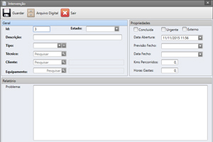 Registo de pedidos de assistência técnica com controlo de tempo e estado de assistências.